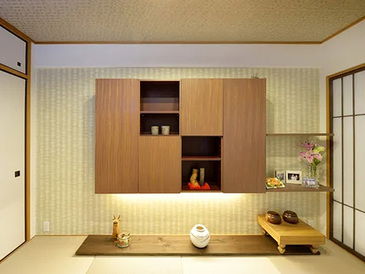 和室に壁付け収納を造作させていただきました。 見た目をおしゃれにするだけでなく、収納を使いやすくしたりひとつひとつ丁寧にプランを選んで取り入れていきました。