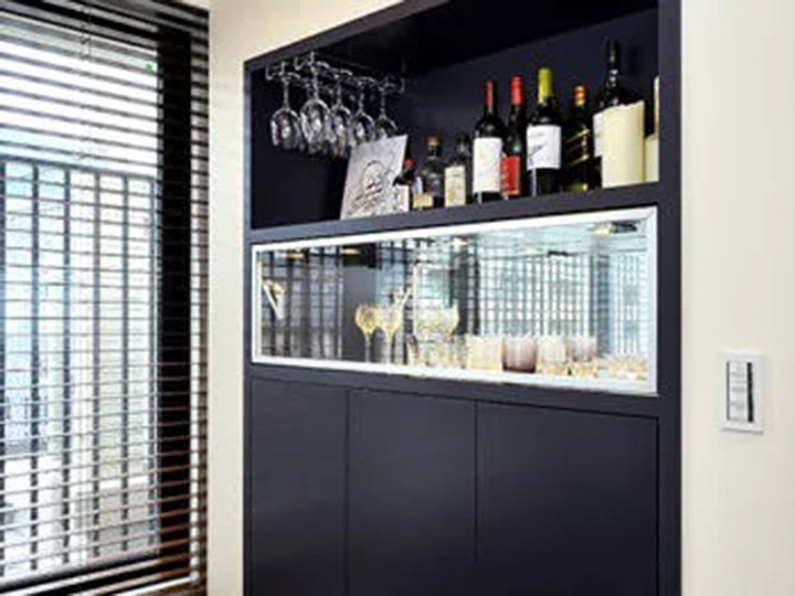 | お客様からのご要望 | バーカウンター風のお酒が飾れる収納棚を造作してください。 |